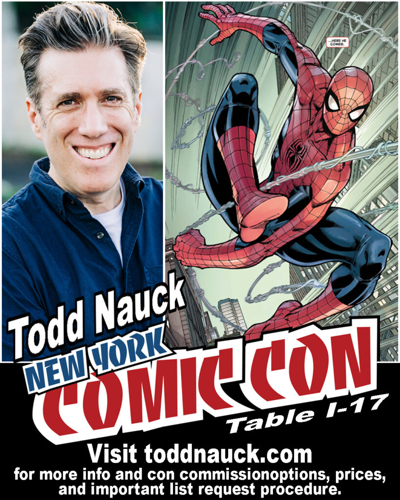 San Diego Comic Con, San Deigo, CA, July 24-28 Artist Alley table ii-01 PANEL: DRAWING WITH TODD NAUCK Thursday, July 25 ROOM 3 5:30-7:00pm Marvel and DC Comics comic book artist Todd Nauck (AmazingSpider-Man, Young Justice) demonstrates his approach to comic art, shares tips and tricks, and relates stories and experiences of his 30 years as a professional comic artist. BOOTH SIGNING: KRS COMICS Booth #3835 Friday, July 26, 2:00-3:00pm I will be signing copies of my KRS SDCC ExclusiveDEADPOOL #1 cover!